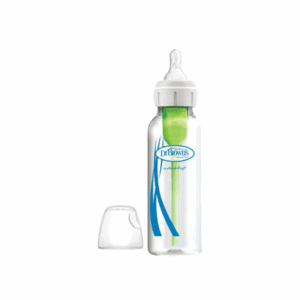 De Dr. Brown Glasfles met standaard hals (250 ml) is speciaal ontwikkeld om je baby een rustige en comfortabele drinkervaring te bieden. Het geavanceerde anti-koliek systeem voorkomt dat lucht in de voeding terechtkomt, waardoor darmkrampjes, spugen en boeren worden verminderd. Zo kan je baby optimaal genieten van elke voeding, terwijl belangrijke voedingsstoffen zoals vitamines A, C en E beter behouden blijven.
