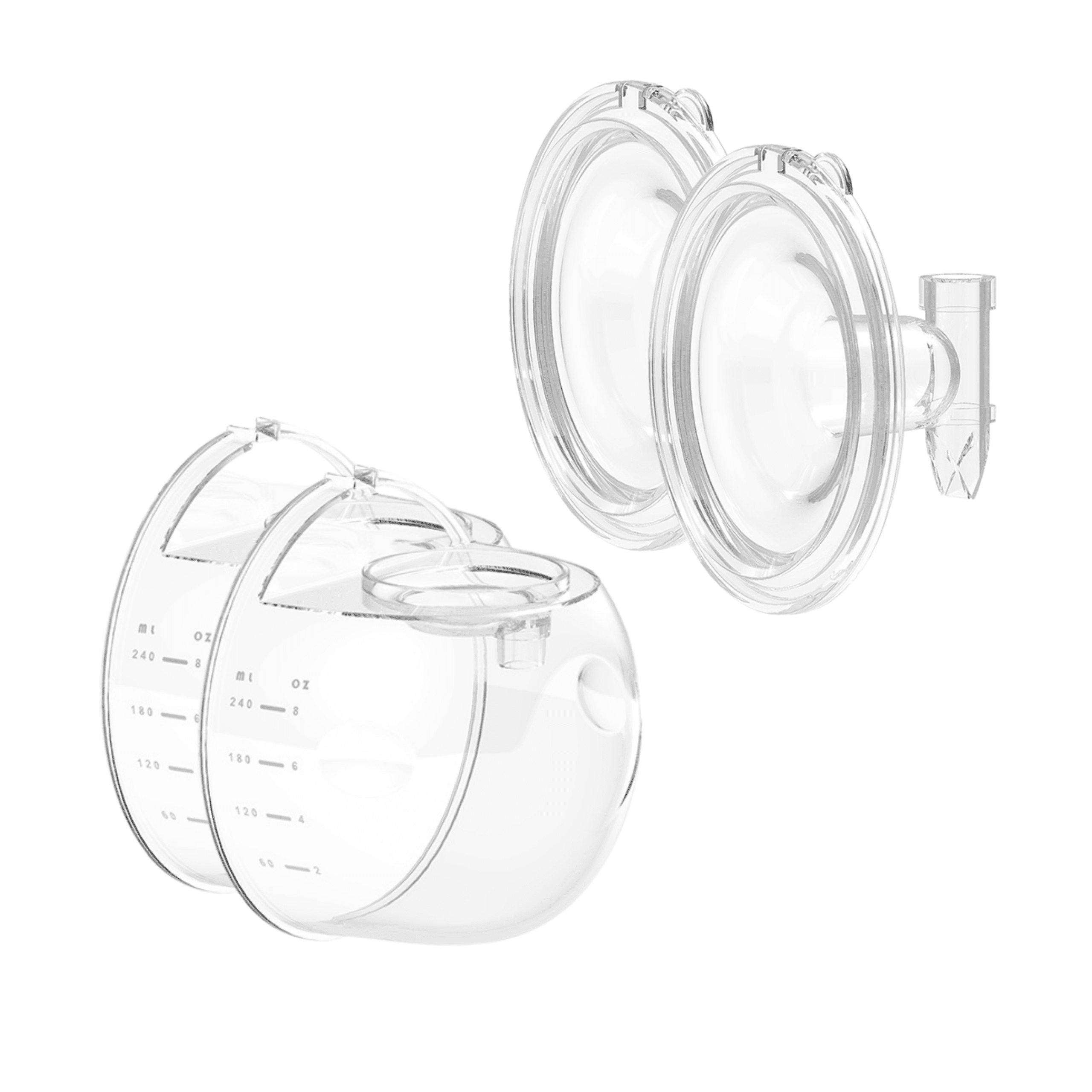 2x Fles, 2x Siliconenborstschild en 2x Siliconendiafragma voor de Nutrea EasyFlow/OptiFlow handsfree borstkolf.